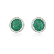 Our signature style circle studs with a sparkly emerald colour enamel.