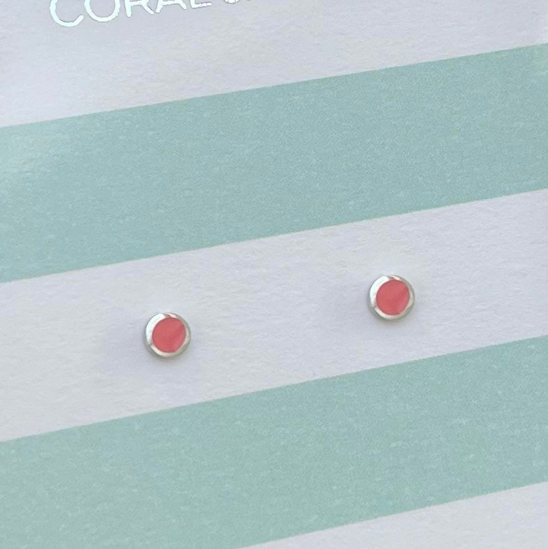 Our signature style circle studs in mini, with a new sunset coral colour way.